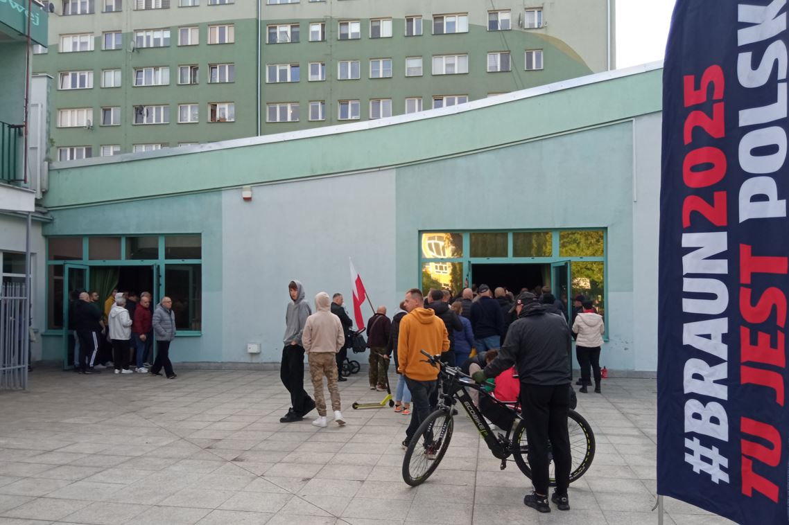 W kolejce do zabrania głosu czekał Krzysztof Bień, aktor z płockiego teatru. Oznajmił, że zna ojca Grzegorza Brauna i że obiecał mu, że kiedy tylko syn przyjedzie do Płocka, to on go wesprze.